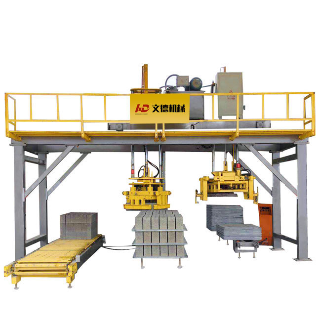 全自動高位離線碼磚機生產(chǎn)線主要是泉州文德機械公司針對目前磚廠生產(chǎn)中,人工碼垛勞動強度大、生產(chǎn)效率低而研發(fā)的一種專用碼垛系統(tǒng),可獨立運行,大大提高了砌塊生產(chǎn)的自動化。 主要由兩個部分組成:砌塊碼垛和托板回收碼垛。根據(jù)不同客戶需求,我們推出高位離線碼垛系統(tǒng)和低位離線碼垛系統(tǒng),主要區(qū)別在于:高位離線碼垛系統(tǒng)采用抓碼方式,低位離線碼垛系統(tǒng)采用疊碼方式。
